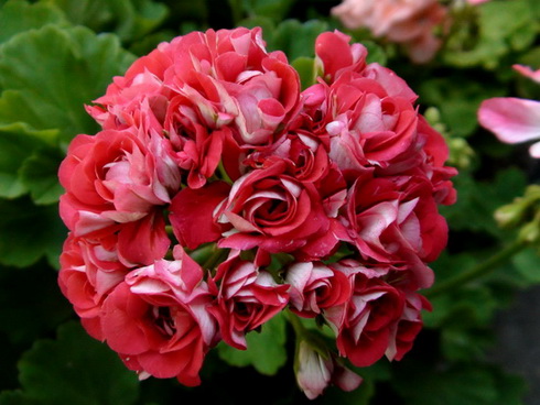 Пеларгония Rosebud Supreme - компактный кустарник, цветущий очень красивыми цветками розоподобной формы. Цветки густомахровые, средних размеров, находятся в крупных зонтиковидных очень плотных соцветиях. Внутренние части лепестков насыщенно-красные, а внешние - белые с едва заметным розовым оттенком.