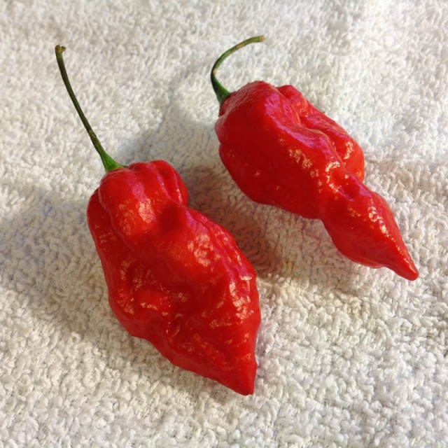 Этот перец имеет происхождение из Бангладеша и Северной Индии и на сегодняшний день является одним из самых жгучих. По шкале Сковилла 1 000 000 – 1 500 000 ед. Среднеспелый (110-115 дней) сорт для теплиц и пленочных укрытий. Растение прямостоячее, высотой 60-70 см. Плоды конусовидные, слегка ребристые, морщинистые, длиной 3-4 см. В технической спелости темно-зеленые, затем становятся оранжевые, в биологической ярко-красные. Имеют изысканный цитрусовый вкус с нотками ананаса. Жгучесть перцу придает капсаицин, который применяется в медицине в качестве обезболивающего и разогревающего средства. Благотворно действует на кровообращение и сердечную мышцу, спасает от переохлаждения и вызывает выработку эндорфинов, уничтожает раковые клетки, снимает депрессию. Плоды рекомендуется употреблять в пищу незрелыми (зелеными) пока они еще «не налились огнем». Используется в любом кулинарном блюде, в соусах, маслах, овощных, рисовых и мясных смесях. Предупреждение: если вы чувствуете сильную жгучесть во рту и это доставляет вам неудобство, не запивайте водой, она придаст еще больше остроты. Лучше употреблять этот перец с молоком или сливками, или заедать сметаной или мороженным.
