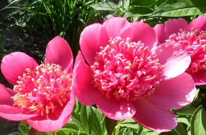 Саженцы пиона Anemoneflora может использоваться для декора каменистой горки. Низкий куст – 50 см с насыщенной листвой имеет прекрасные соцветия, состоящие из красных лепестков с желто-оранжевыми тычинками. Сорт отличается средним периодом цветения. Строение бутона особенное, включает несколько рядов широких лепестков, а в сердцевина заполнена узкими лепестками разных оттенков. Цветение выглядит уникально и утонченно.