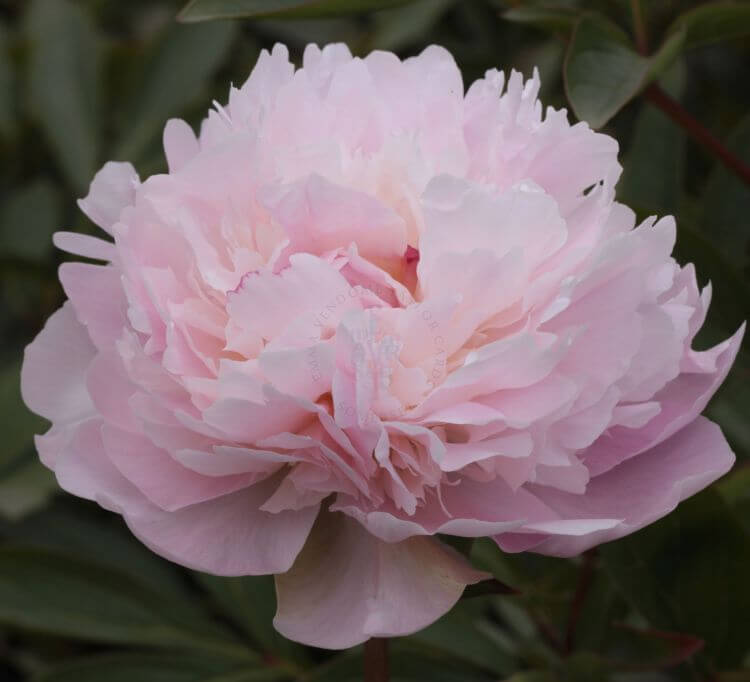 Травянистый пион Baronesse Schroeder - цветок махровый, очень крупный, 18 см в диаметре. Форма шаровидная, бледный телесно-белый с кремовым оттенком. Наружные лепестки часто со слабым розовым оттенком. Раскрывает крупную воронковидную корону, когда полностью открыт, ароматный. Куст сильный, высокий (90 см). Стебли прочные, листья превосходные, тёмно-зелёные. Цветение обильное в средне-поздние сроки.