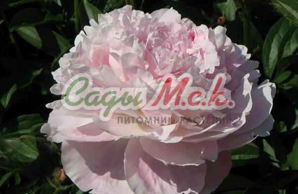 Саженцы пиона Cathаrine Fontijne создают яркий акцент в центре экспозиции сада. Крупные, 20 см, цветки светло-сиреневого оттенка с белой каймой, издают тонкий изысканный аромат. Плотные лепестки располагаются в несколько рядом, образуя плотный шар.