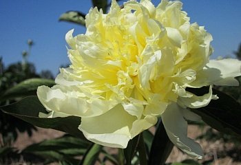 Саженцы пиона Goldilocks используются для создания декоративных экспозиций. Махровый цветок светло-желтого оттенка, диаметра 11 см, изменяет по форму по мере созревания. Куст раскидистый с крепкими прямыми стеблями, ярко-зелеными листьями. Растение характеризуется средним сроком цветения, без запаха.