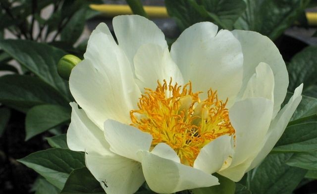 Саженцы пиона Moonrise используются для одиночных посадок. Раскидистый, пушистый кустарник очень эффектно смотрится при цветении. Изящный бутон, диаметра 20 см, с округлыми лепестками цвета слоновой кости. Сердцевину украшают плотные ярко-желтые тычинки с белыми нитями. Прочные стебли с яркой листвой.