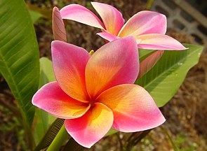 Plumeria Mardi Gras - новый, очень редкий гибридный сорт. Кустарник компактный. Цветы красивой формы, пастельных, оранжевых, желтых и розовых тонов. Аромат цветков сладкий, нежный.