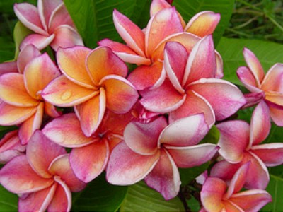 Plumeria Penang Peach - новый гибридный сорт. Листья длинные, большие, темно-зеленые, достигают 19 см длиной. Цветки средним диаметром 8 см, желтых, персиковых и розоватых тонов, обладают легким персиковым ароматом. Лепестки продолговатые, закругленные, завернутые, располагаются в нахлест.