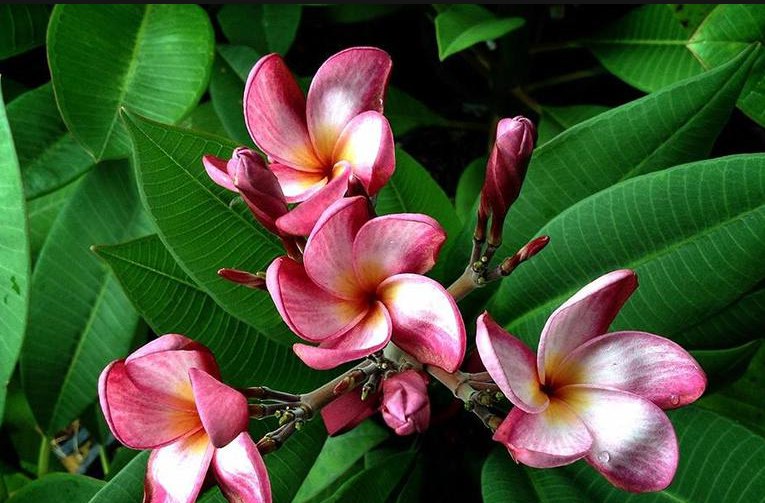 Plumeria Violet Pink - прекрасное декоративное деревце. Цветки крупные, 5-лепестковые, светло-розовые с насыщенно-розовой каймой лепестков и темно-фиолетовыми пятнами. Аромат приятный. Листья толстые, крупные, темно-зеленого окраса.