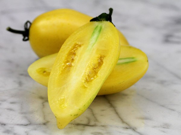 Помидор Cream Sausage - детерминантное растение. Плоды удлиненные, сливо-образные, насыщенно-желтого цвета как снаружи, так и внутри. Мякоть мясистая, мягкая, отличного вкуса. Сорт устойчив к заболеваниям томата.