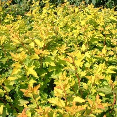 Саженцы пузыреплодника «Дартс Голд», вырастают в крупномерный кустарник с шарообразной кроной до 1,5 м высотой.
