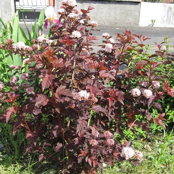 Саженцы выпускают крупные, немного сжатые (в районе жилок) листья, бордово – красного колера. Если же куст высадить в тени, то листва будет иметь зеленый окрас, с красноватым налетом. В осенний период, они приобретают «загорелый», то есть бронзовый окрас.