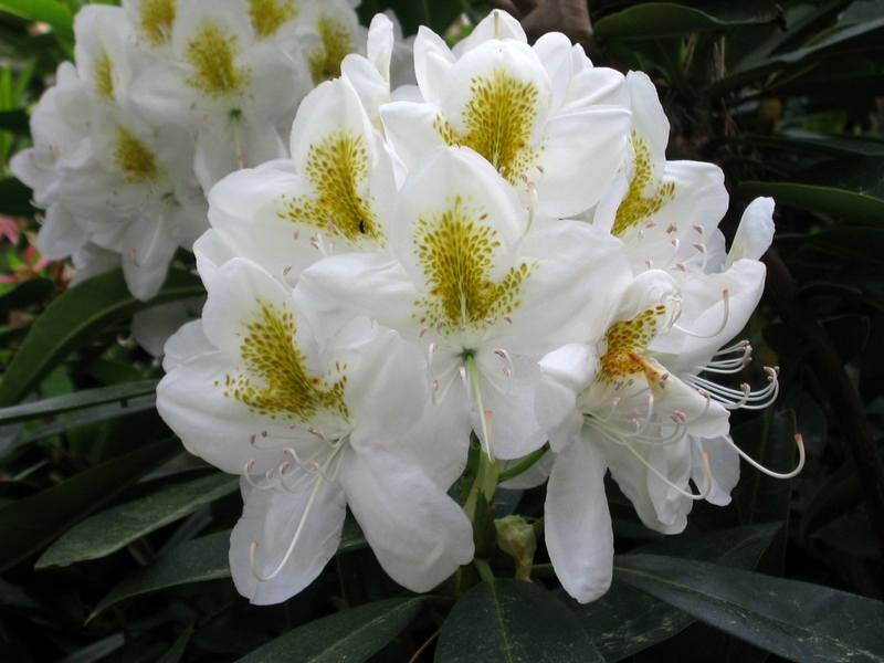 Рододендрон CATAWBIENSE ALBUM - очень старинный сорт. Рост побегов очень быстрый, в 10 лет куст достигает высоты более 180 см, Габитус куста шаровидный. Цветки собраны в плотные соцветия, в бутонах розовые, затем становятся белыми с бледно-зеленым рисунком. Исключительная морозоустойчивость - до минус 32 °С.