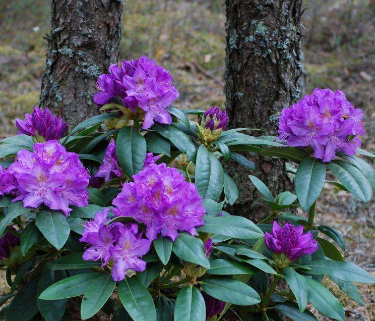 Саженцы рододендрона Пурпуреум Грандифлорум представляют собой очень раскидистое, сильноветвистое растение, и являются отличным украшением загородного участка.