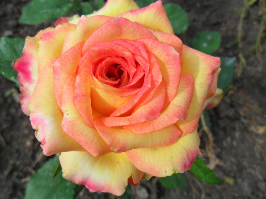 Роза Ambiance - вид чайно-гибридной розы класса премиум. Ветвистый, сильнорослый куст достигает в высоту до 100 см, в ширину до 80 см. Шипов на побегах немного. Цветки большие, до 10 см в диаметре, высотой до 7 см, яркого, сочного, желто-оранжевого цвета, махровые – в одном цветке до 40 лепестков, идеальной, бокаловидной формы. Повторно цветущий сорт, цветет на протяжении всего сезона. Листья ярко-зеленого цвета, крупные.