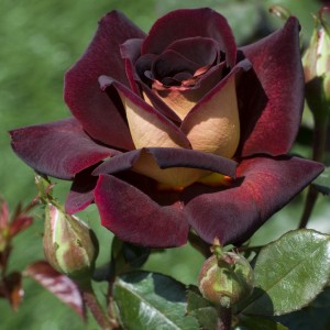 Роза Eddy Mitchell - бархатный бордово-красный цветок. Насыщенные лепестки иногда приобретают очень темный, почти черный оттенок, от чего кажутся весьма необычными, эпатажными. А изнаночная сторона цветков, на которой преобладают золотистые оттенки, придает распустившимся розам особую пикантность. Цветки бокаловидные, довольно крупные, с большим количеством (более 27) лепестков. Сорт обладает легким ароматом и сильной устойчивостью мучнистой росе и черной пятнистости. Цветение обильное, повторное.