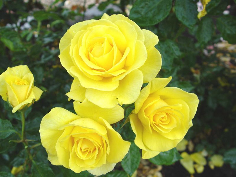 Роза Gold Symphonie - цветы золотисто-желтого цвета, махровые (45 лепестков), собраны в небольшие кисти. Диаметр цветка 6 см. Высота растения - 30-40 см. Аромат легкий, сорт повторноцветущий.