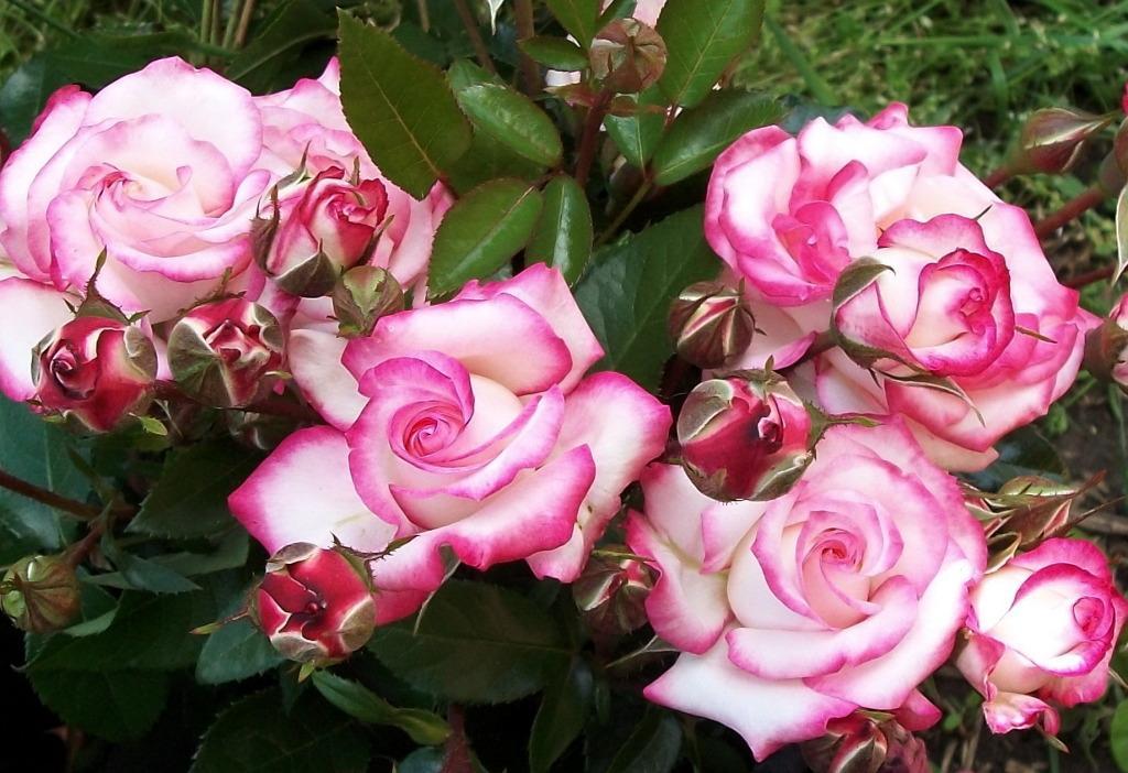 Роза Handel изысканная, со сладковатым, приятным, фруктовым ароматом. Цветки крупные (около 10 см), махровые (20-25 лепестков), бледно-розовые или белые, окаймлённые тёмно-розовым оттенком. Цветет обильно и продолжительно. Куст высокий, сильнорослый, сильноветвистый, аккуратный. Высота куста до 3 м, ширина – 2 м. Листья средние, гладкие, блестящие, насыщенного, тёмно-зелёного цвета з сизым отливом. Морозостойкий сорт.