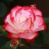 Jubilee du Prince de Monaco -эффектная роза, которая покоряет красотой цветка. В полуроспуске бело-кремовые лепестки окантованы нежной малиновой каймой, которая по мере раскрытия цветка расширяется, а ее интенсивность усиливается до вишневой. Цветки крупные, махровые, долго сохраняют прекрасную форму. Размер цветка 9-10 см. Аромат слабо душистый. Компактные кусты высотой до 80 см, с плотной матовой листвой, выглядят опрятно в любое время.