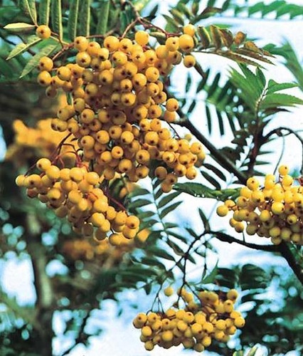 Саженцы рябины садовой Джозеф Рок – необычная культура, даже большая редкость, поэтому станет отличным украшением Вашей дачи или огорода. Дерево отличается небольшими габаритами и отменной урожайностью. Плоды саженцев рябины Джозеф Рок по размеру очень мелкие с ярким желтоватым оттенком. По вкусу ягоды слегка кисловатые, но это не портит обще картины вида. Главными достоинствами выступают: устойчивость к сильным морозам и транспортабельность