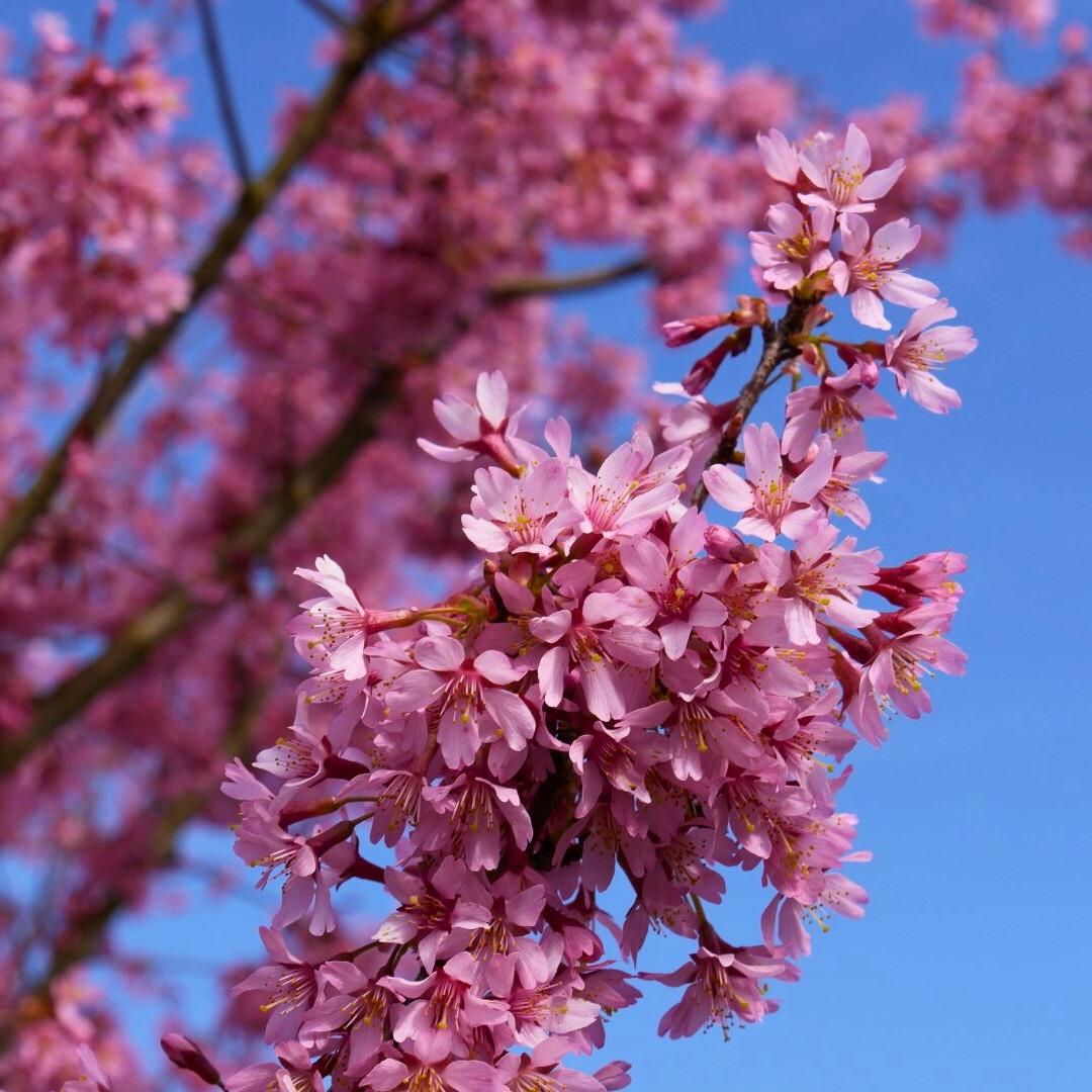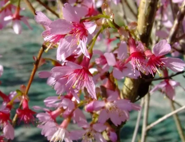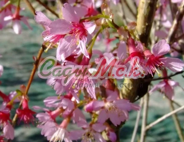 Куст, или небольшое дерево, высотой до 2 м. Листья бронзово – зелёные весной, зелёные летом, оранжево-красные осенью. Цветки насыщенно розовые, ароматные, цветут ранней весной. Хорошо растёт на солнышке и в полутени. Плоды тёмно – фиолетовые появляются осенью. Растёт на любых грунтах