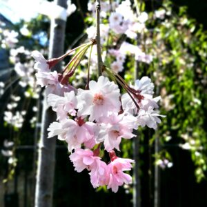 Слива косматая Пендула на штамбе (Prunus subhirtella Pendula ) - небольшое лиственное дерево, очень популярно в Японии. Растет медленно. Крона широкая, зонтикообразная с плакучими ветвями диаметром до 5м. Листья зеленые, блестящие. Осенью становятся желто-оранжевыми. Цветет обильно в апреле-мае, до распускания листьев, розовыми цветками, около 2см в диаметре, обильно покрывающие все дерево. Любит солнечные места, плодородные увлажненные почвы. Прекрасно подойдет в качестве солитера, высаженное в видном месте сада