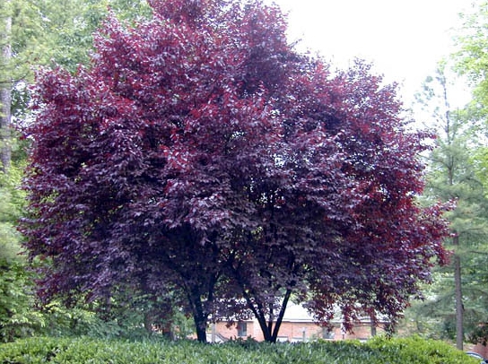 Листья неопушенные, эллиптической формы, в длину достигают 7 см, глянцевые. Верхняя часть листа красновато-бурого цвета с металлическим оттенком, нижняя – интенсивно-красная. Цвет листьев осенью не меняется.