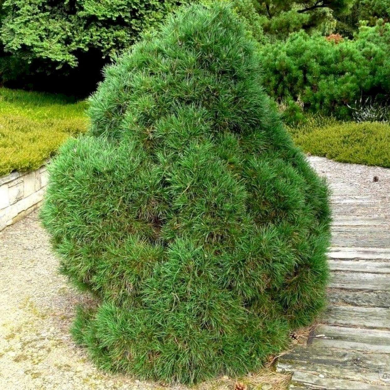 Сосна обыкновенная Globosa Viridis - карликовая, очень компактная, зеленая сосна, основным отличием которой является очень густая хвоя двух размеров. Молодая - появляется поздно летом и вырастает всего на половину длины прошлогодней. Эти светлые и пушистые кисточки на концах побегов, закрывающие молодые почки, придают всему растению некоторую «плюшевость». На следующий сезон хвоя дорастает до своей полной длины (до 10 см), обеспечивая всей сосне широкие, мягкие формы. Высота взрослого растения - 2,5 м.