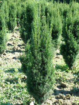 Тисс средний Hicksii - женская форма. Кустарник 3-4 м высоты. Крона до 1,5 м диаметром, широко колоновидная. Побеги круто восходящие вверх, длинные. Хвоя четко двурядная на коротких веточках, густая, до 3 см длины, игольчатая, остроконечная, крепкая, колючая, сверху блестящая, темно-зеленая, с отчетливой центральной жилкой, снизу светло зеленая. Сорт широко распространен.