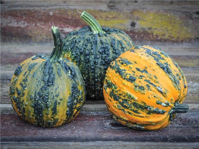 Тыква Scheherazade Squash - сорт раннего срока созревания. Период вегетации - 85 дней. Плоды округлые, слаборебристые, насыщенного оранжево-желтого цвета с темно-сине-зелеными бугорками. Масса плода - 2,2-4,5 кг. Мякоть вкусная, используется для разных видов переработки.