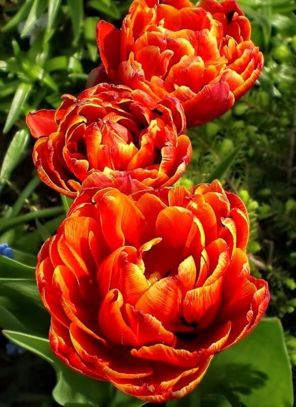 Тюльпан Allegretto - шикарный, густо - махровый, пионовидный сорт тюльпанов. Бутоны крупные, диаметром до 12 см. Окрас цветков яркий, двуцветный (красно-желтый). Красный у основания цвет переходит в ярко-желтый по краям. Расположены цветки на прочной ножке. Сорт невероятно красивый. Цветки хороши в срезке, долго сохраняют свежесть. Цветет растение продолжительно, начиная с конца мая.