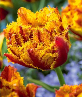 Тюльпан бахромчатый Бастиа - махровый, роскошный сорт. Куст высотой до 40 см. Цветки крупные, в оранжево-персиковых тонах, с игольчатой бахромой, напоминающей иней. Период цветения: апрель-май. Для выращивания тюльпанов подходит практически любая почва. В период бутонизации и цветения - полив должен быть более обильней, чем обычно.