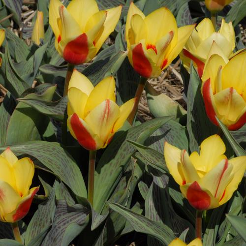 Тюльпан Beethovens Memory - низкорослый сорт раннего срока созревания. Высота растения - 25-30 см. Цветок бокаловидной формы, среднемахровый. Окрас цветков ярко-желтый, внешняя сторона лепестков красная с желтыми краями. Стебли темно-зеленые с коричневым оттенком, листья зеленые, большие.