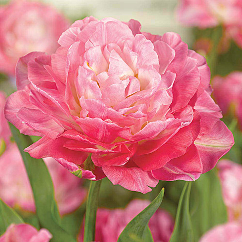 Тюльпан Double Sugar - роскошный махровый цветок светло-розового цвета. Окрас лепестков плавноменяется от внешней к внутренней части цветка, создавая неповторимое впечатление. Соцветия подолгу не увядают, радуя своей красотой почти месяц. Высокие крепкие цветоносы устойчивы к непогоде и обеспечивают качественную срезку. Эти цветки кветут в поздние сроки. Высота растения - 40 см.