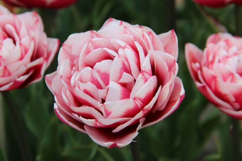 Тюльпан Gerbrand Kieft принадлежит классу махровых поздних тюльпанов. Форма бутона пионовидная. Он окрашен в красный цвет с белым обрамлением лепестков. Высота цветоноса взрослого растения – до 60 сантиметров. Временем посадки этих тюльпанов является осень с сентября по ноябрь. Цветут Gerbrand Kieft в мае.