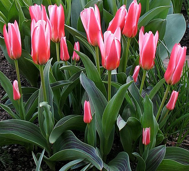 Тюльпан Heart's Delight - очень привлекательный сорт. Многолетнее растение высотой 15-25 см. Листья полосатые, пурпурно-зеленые. Цветок звездчатый, колокольчатый, внутри - нежно розовато-желтый, снаружи - ярко-карминово-розовый, с нежно-розовой каймой по краю. Цветет в апреле-мае.