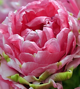 Тюльпан Christo - это поздноцветущий сорт, который относится к классу Махровые поздние тюльпаны. Его густомахровый цветок внешне напоминает соцветие пионов. Секрет его красоты – гармония – розово-фиолетового с бело-зеленым цветом. Кроме того, каждый цветок имеет по 18-20 лепестков. В раскрытом виде размах его ярких лепестков равен 8-10 см в диаметре. В пик цветения цветок довольно тяжелый. Цветение у этого сорта продолжительнее, по сравнению с другими видами (до трех недель). Цветонос достаточно крепкий, высотой 45-60 см. Период цветения – май.