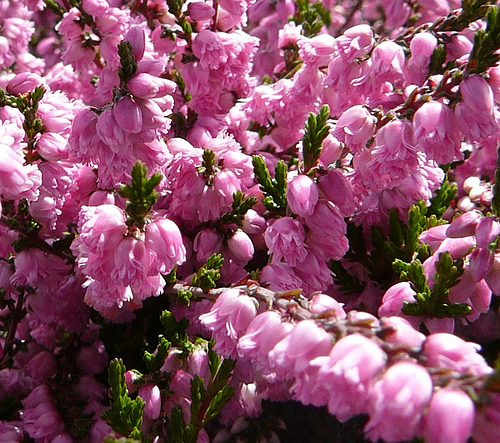 Вереск обыкновенный сорта J.H.Hamilton – многолетний вечнозеленый кустарник с округлой кроной, который характеризуется невысокой скоростью роста, благодаря чему не превышает в высоту 30 см. Цветы этого сорта очень красивые, густомахровые, лососево-розового цвета, расположенные на растущих вертикально соцветиях. Листья игольчатые, ярко-зеленые летом и красновато-бронзовые в осенние дни. Длина соцветий достигает двадцати сантиметров. Цветами радует с начала сентября до начала октября.По окончании периода заморозков рекомендуется делать обрезку куста.Любит умеренно увлажненную, обогащенную почву.Морозоустойчив, но поздние весенние заморозки могут нанести вред кустарнику.Светолюбив и будет пышно цвести на участках с хорошим доступом солнечного света. Может расти и на притененных территориях.