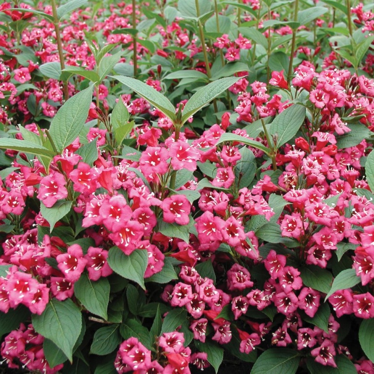 Саженцы Вейгелы Bristol Ruby представляет один из наиболее популярных гибридов растения Вейгелы. Кустарник указанного подвида довольно обширный, он имеет размеры до 3 м высотой. Как правило, очень широко разрастается в ширину. Крупномер Bristol Ruby имеет округлые, продолговатые листья, которые имеют насыщенную зеленую окраску. Листва достигает до 10 см длины. Кустарник имеет роскошные цветы насыщенного красного цвета, которые обычно имеют скрытую оранжевую серединку. Саженец довольно быстро растет, уже в июне вы сможете увидеть первое цветение растения. Bristol Ruby цветет дважды за год – ранней весной и осенью.