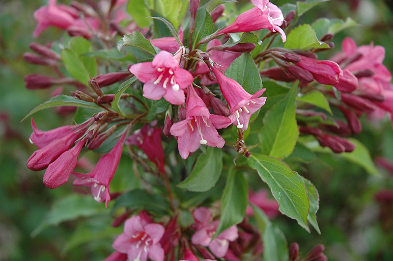Вейгела цветущая "Румба" - Weigela florida 'Rumba'. Это компактный полу карликовый кустарник, с округлой слегка распростертой короной, с изящными, наклонно-вертикальными побегами в высоту около 1-1,2 м., и в ширину достигает около1,2-1,5 м., Растет средней скоростью.